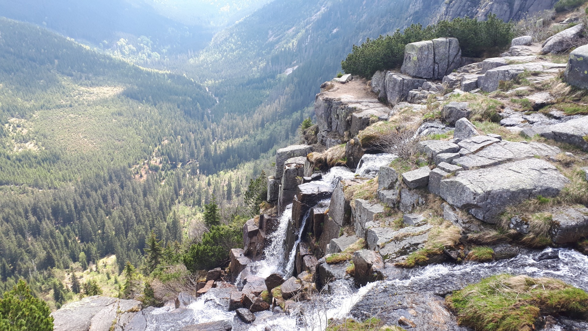 Autobus Vás vezme na horní Mísečky, kde vystoupíte a dáte se Vodovodní cestou směr Špindl. Celou cestu klesáte, místy i relativně prudce. Jdete lesní cestou s kamenitými úseky. Zkušenější jezdci můžou i na kole, nebo případně cestu zdolat s kočárkem, ale opravdu pozor ve strmých úsecích. Ve Špindlerově Mlýně se můžete dobře najíst, napít, projít se podél potoka k Dívčí lávce. Cesta podél potoka je hladký asfalt, v podstatě to můžete absolvovat i v podpatkách, jako spousta špindlerovských krasavic.